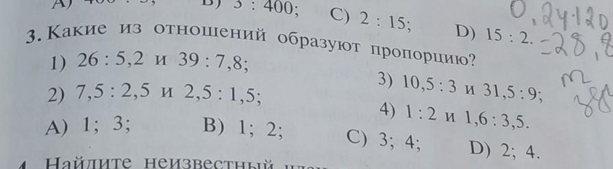 3. Какие из отношений образуют пропорцию? помогите заранее спасибо делаю лучшим ответом