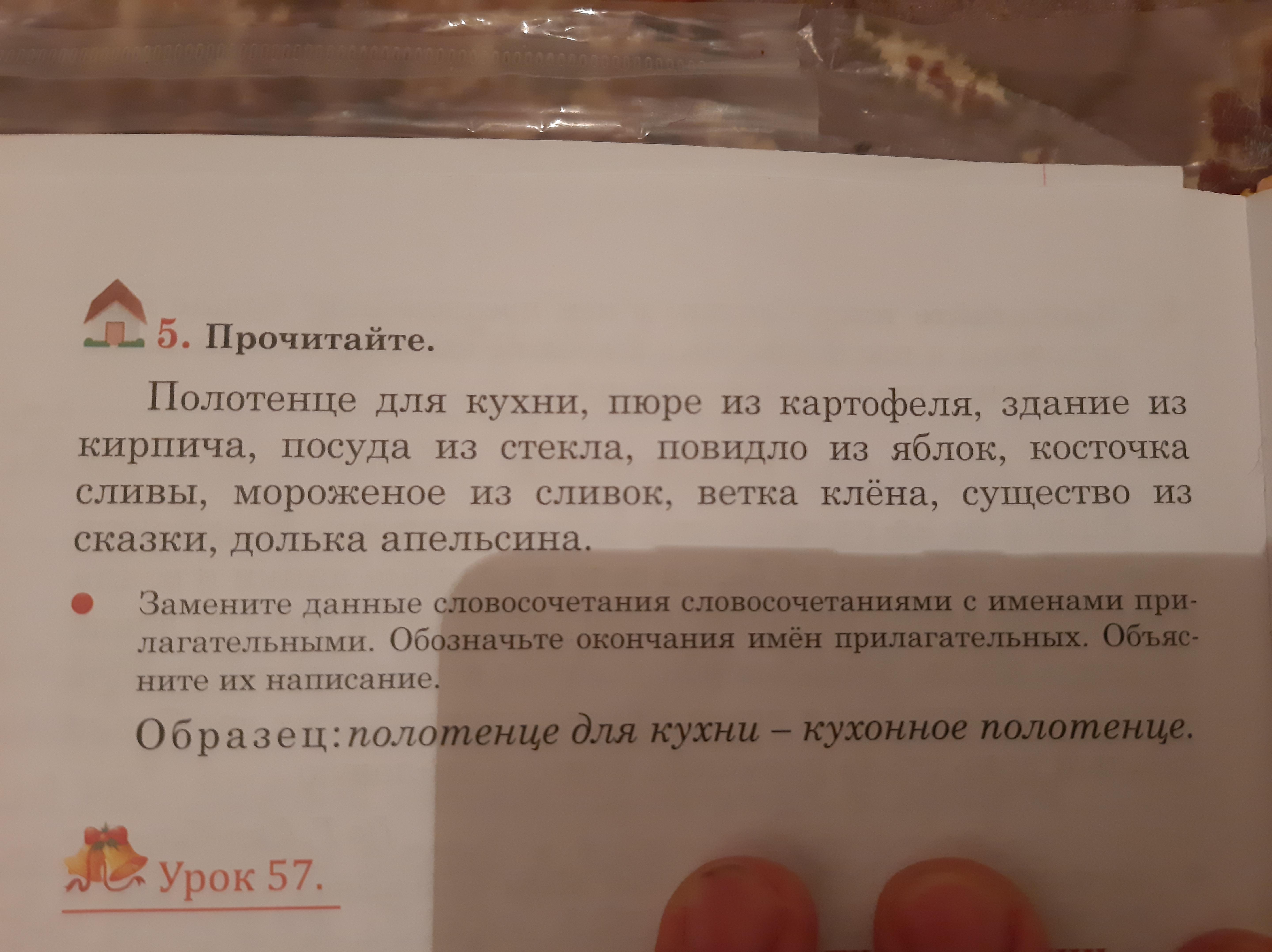 Полотенце для кухни, пюре из кортофеля, здание из кирпича, посуда из стекла, повидло из яблок, косточка сливы, мороженое из сливок, ветка клёна, существо из сказки, долька апельсина