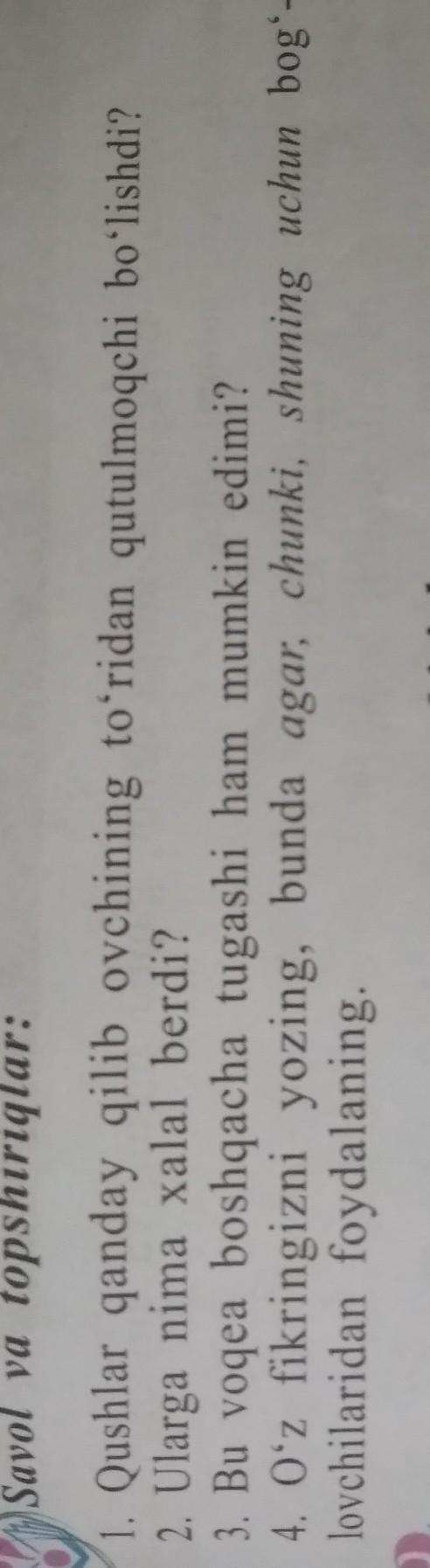 1-Qushlar qanday qilib ovchining to'ridan qutulmoqchi bo'lishibdi?