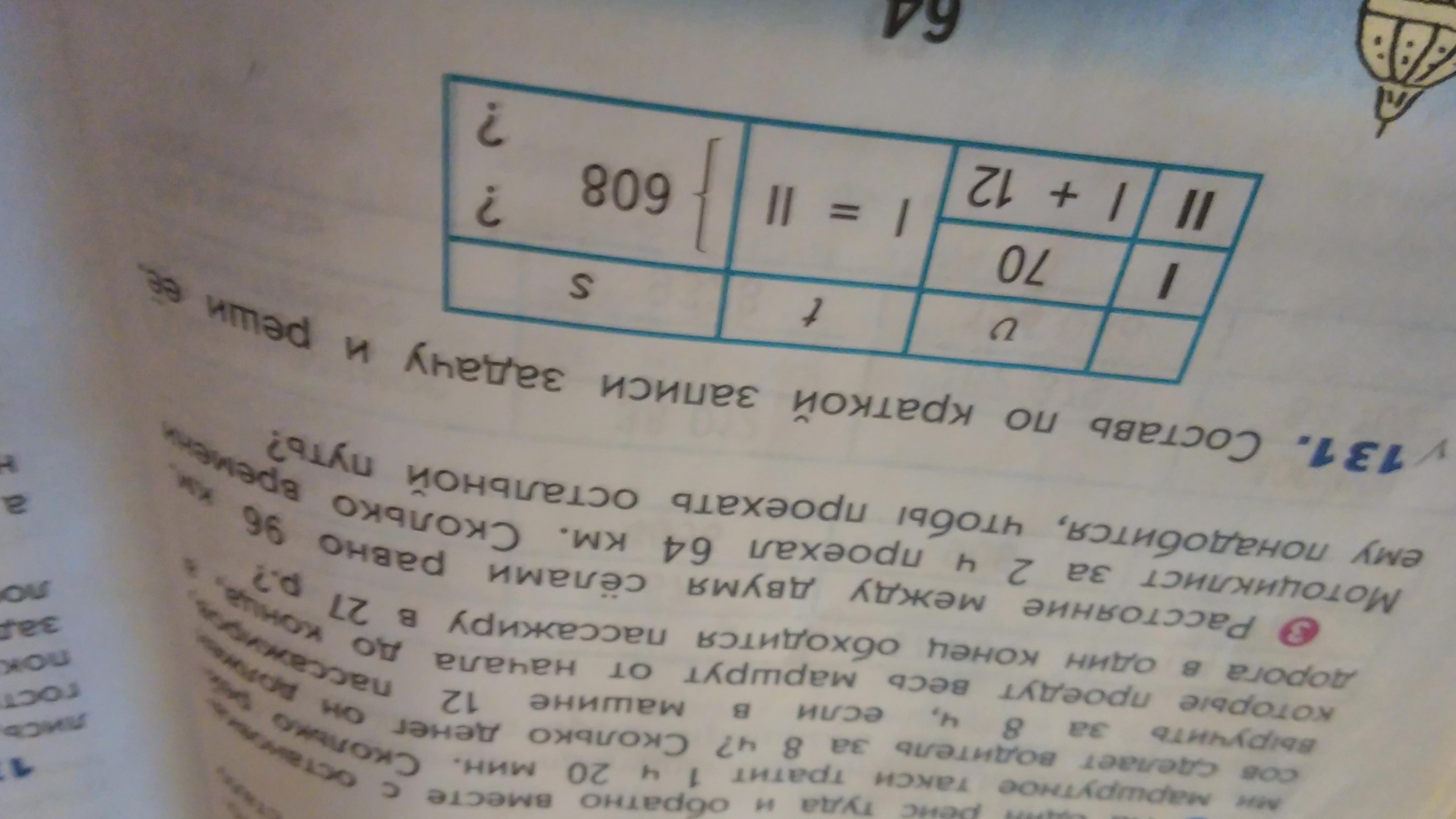 Из двух поселков одновременно выехали две машины. Скорость первой - 70 км/ч. Скорость второй машины на 12км/ч больше, чем у первой. Известно, что вместе они преодолели расстояние в 608 км и встретились через 4 часа.