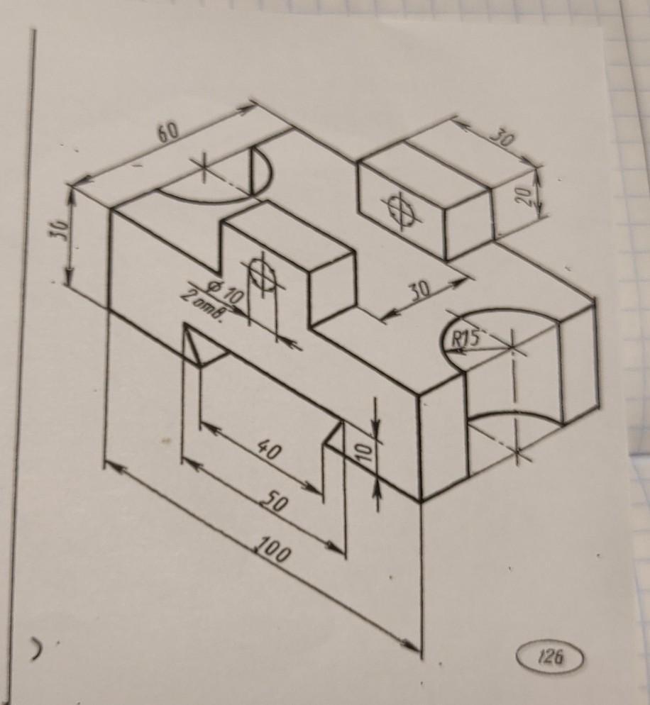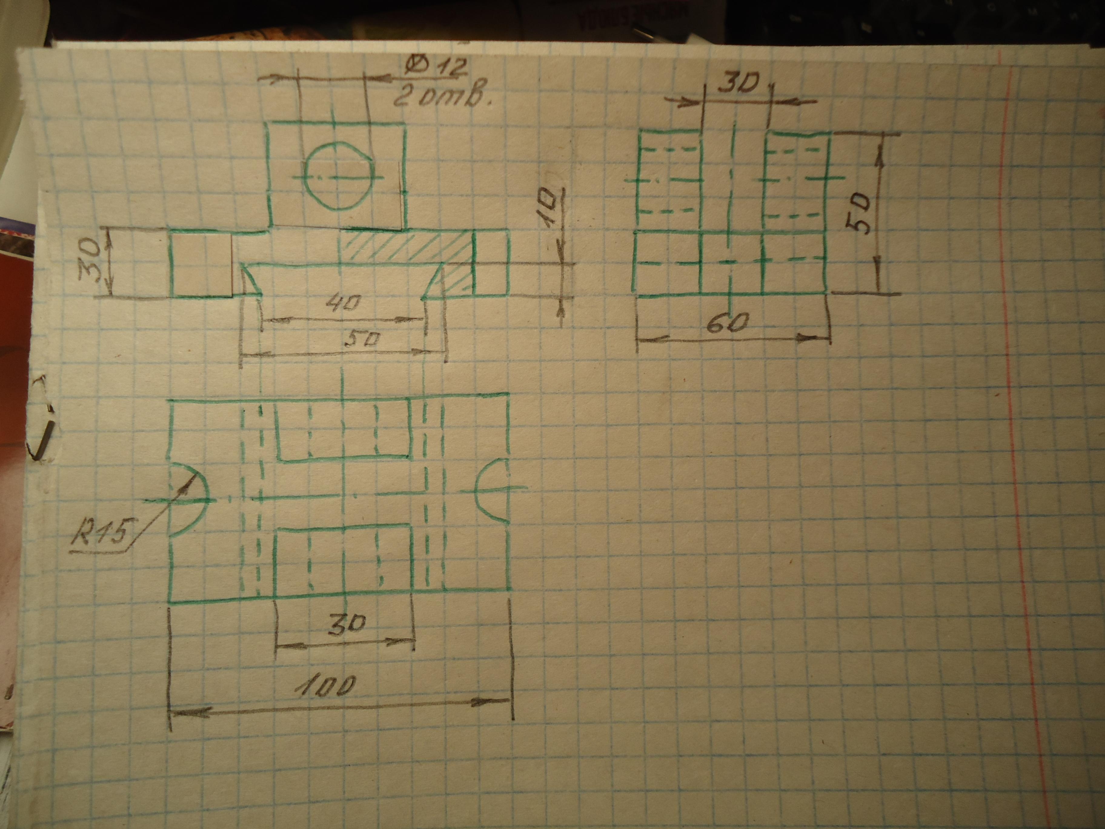 На виде спереди выполнено соединение половины вида и половины разреза.