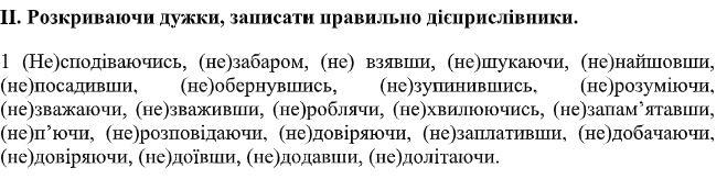 Не сподіваючись,незабаром,не взявши,нешукаючи,не найшовши,не посадивши,не обернувшись,незупинившись,не розуміючи,незважаючи,незваживши, не роблячи,не хвилюючись,незапам'ятавши,не п'ючи,не розповідаючи,недовіряючи,не заплативши,недобачаючи,недовіряючи,недоївши,недодавши,недолітаючи