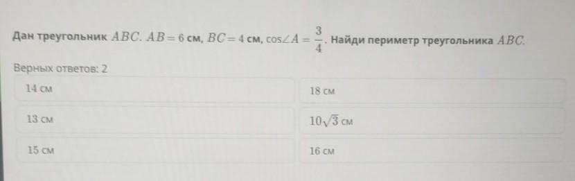 Найди периметр треугольника ABC.