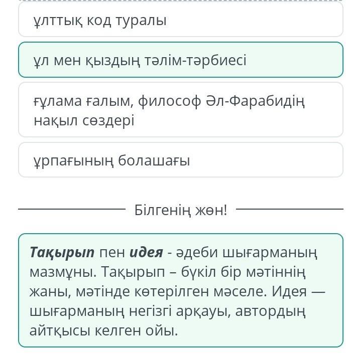 1 - Мәтін тақырыбын анықта.