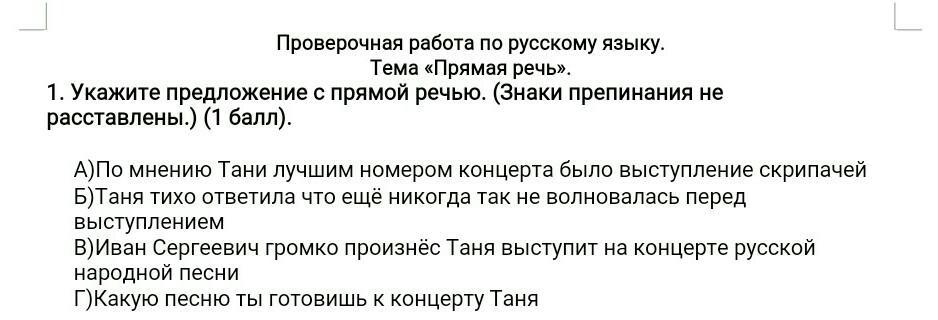 В)Иван Сергеевич громко произнёс Таня выступит на концерте русской народной песни