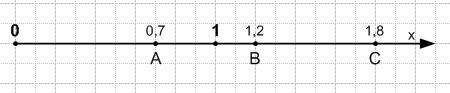 примите за единичный отрезок длину 10 клеток тетради и отметьте на координатном луче точкипримите за единичный отрезок длину 10 клеток тетради и отметьте на координатном луче точки: А (0,7); В(1,2); С(1,8). Срочно
