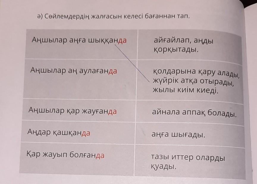 ә) Сөйлемдердің жалғасын келесі бағаннан тап.