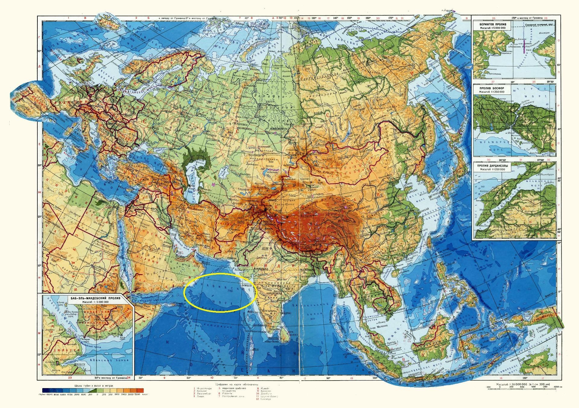 Воспользуемся физической картой Евразии (см карту ниже).