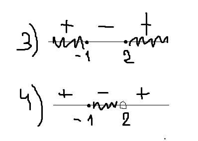 1) найденные точки располагаем на прямой и расставляем знаки в промежутках: подставляем число из промежутка в изначальный пример и смотрим, какого знака получается ответ. если отрицательного - промежуток отрицательный (аналогично с положительным значением)