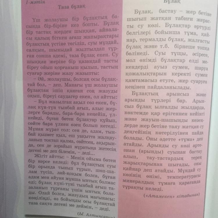 Ответ:1бұлақ жер астынан шығып жатқан таза су
