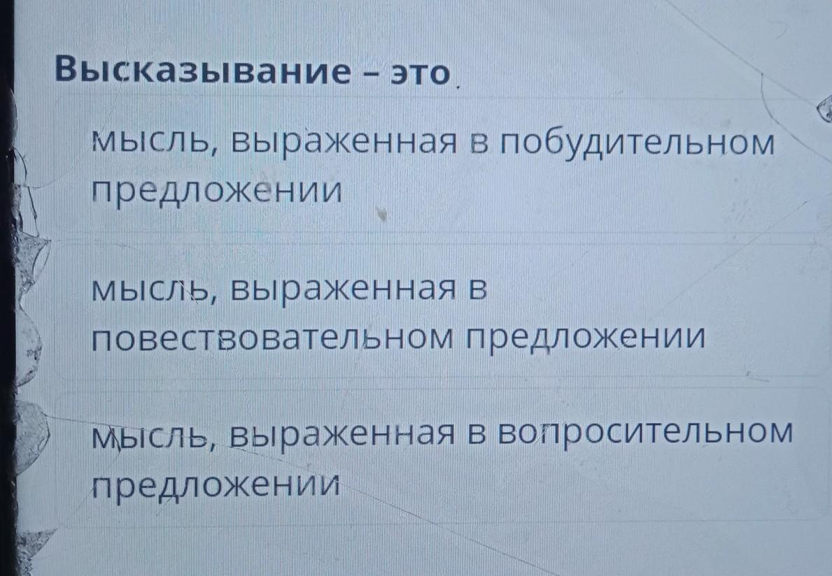 Высказывание - это мысль выраженная в повествовательном предложени.