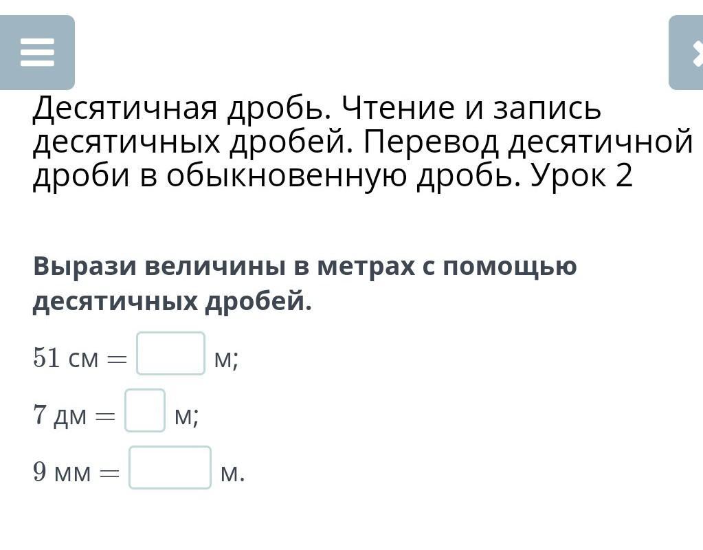 Десятичная дробь. Чтение и запись десятичных дробей. Перевод десятичной дроби в обыкновенную дробь. Урок 2