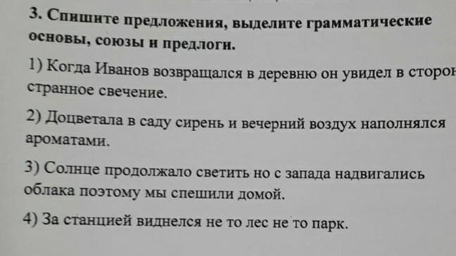 Когда Иванов возвращался в деревню, он увидел в стороне странное свечение. (ГРАММАТИЧЕСКАЯ ОСНОВА: "Иванов возвращался" и "он увидел")