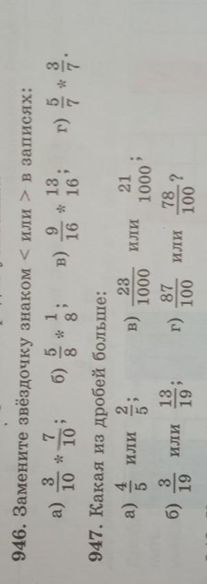 3/10<7/10; 5/8>1/8; 9/16<13/16 ;5/7>3/7