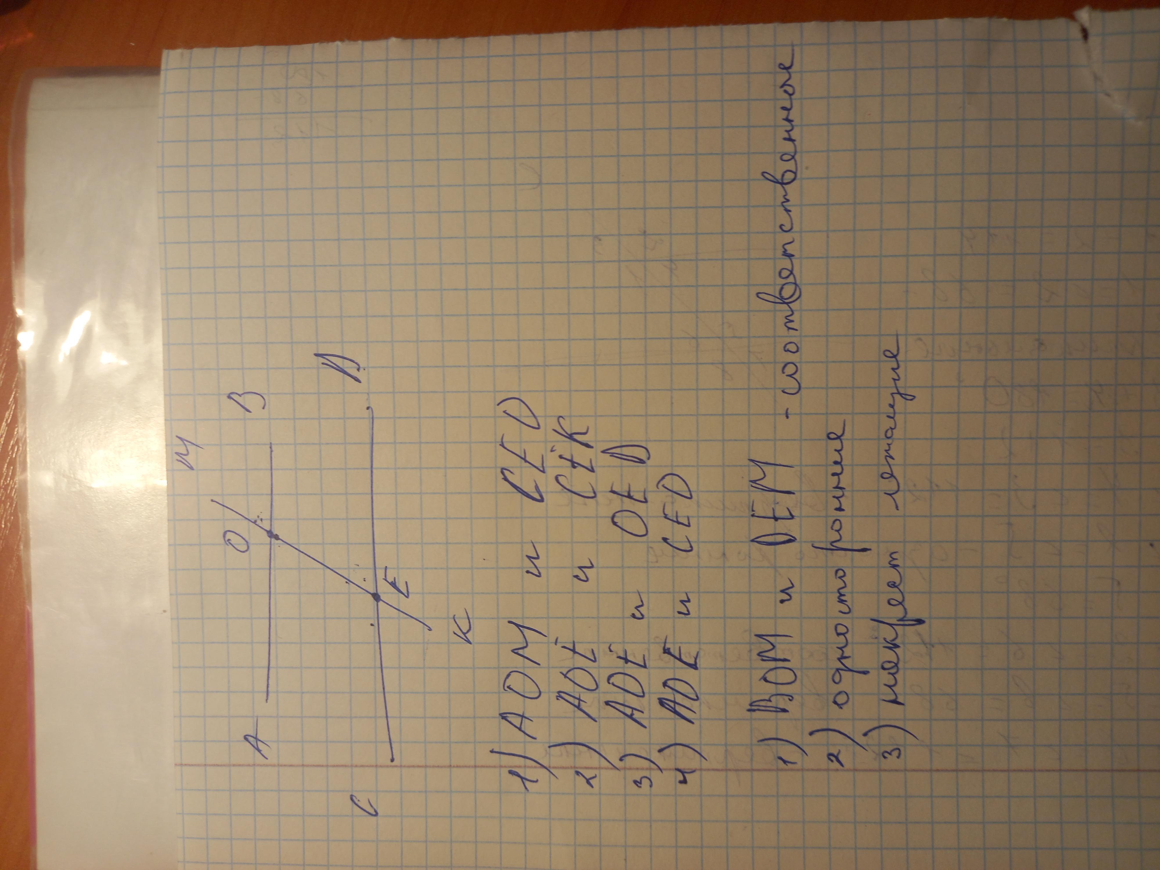 (укажите какими углами(соответственными накрест лежащими или односторонними) являются:1)угол BOM и угол DEM