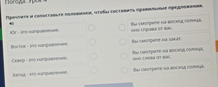 Прочтите и сопоставьте половинки, чтобы составить правильные предложения.