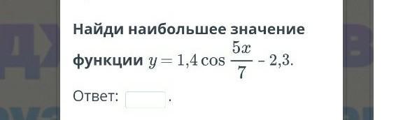 Найди наибольшее значение функции у=1,4cos5x/7-2,3