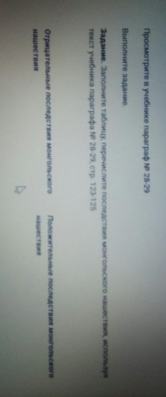 Заполните таблицу, перечислите последствия монгольского нашествия, используя текст учебника параграфа № 28-29, стр. 123-125