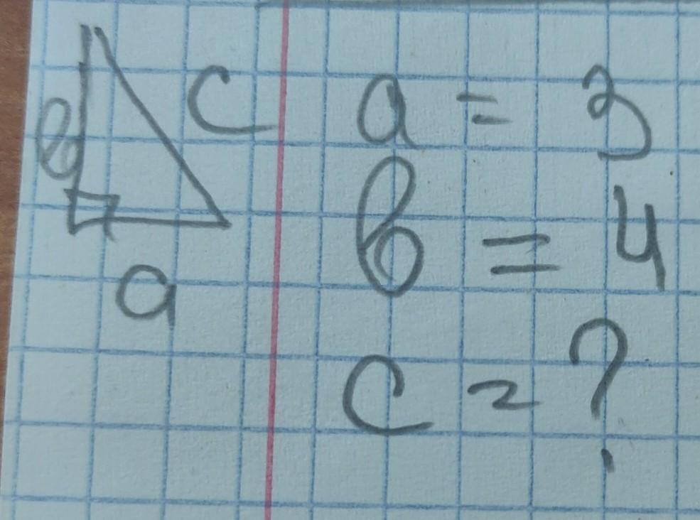 с=√(а²+b²)=√(3²+4²)=√(9+16)=√25=5