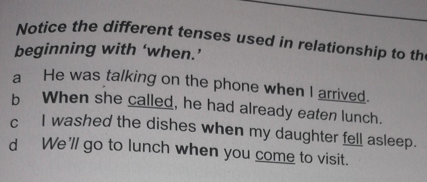 1) past continuous, past simple. 2) past simple, past perfect. 3) past simple, past simple. 4) future simple, past simple.