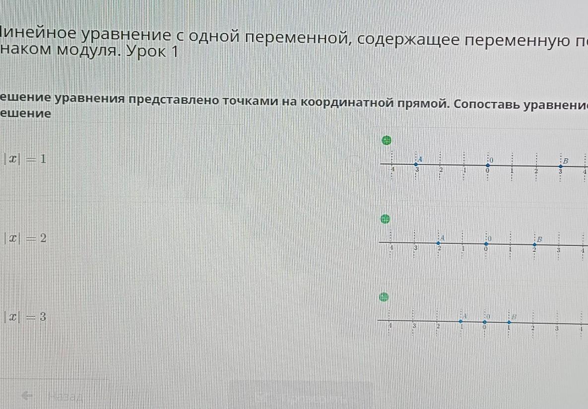 линейное уравнение с одной переменной содержащие переменную под знаком модуля Урок 1 решение уравнений представлена точками на координатной прямой Сопоставь уравнения решение пж пж помогите