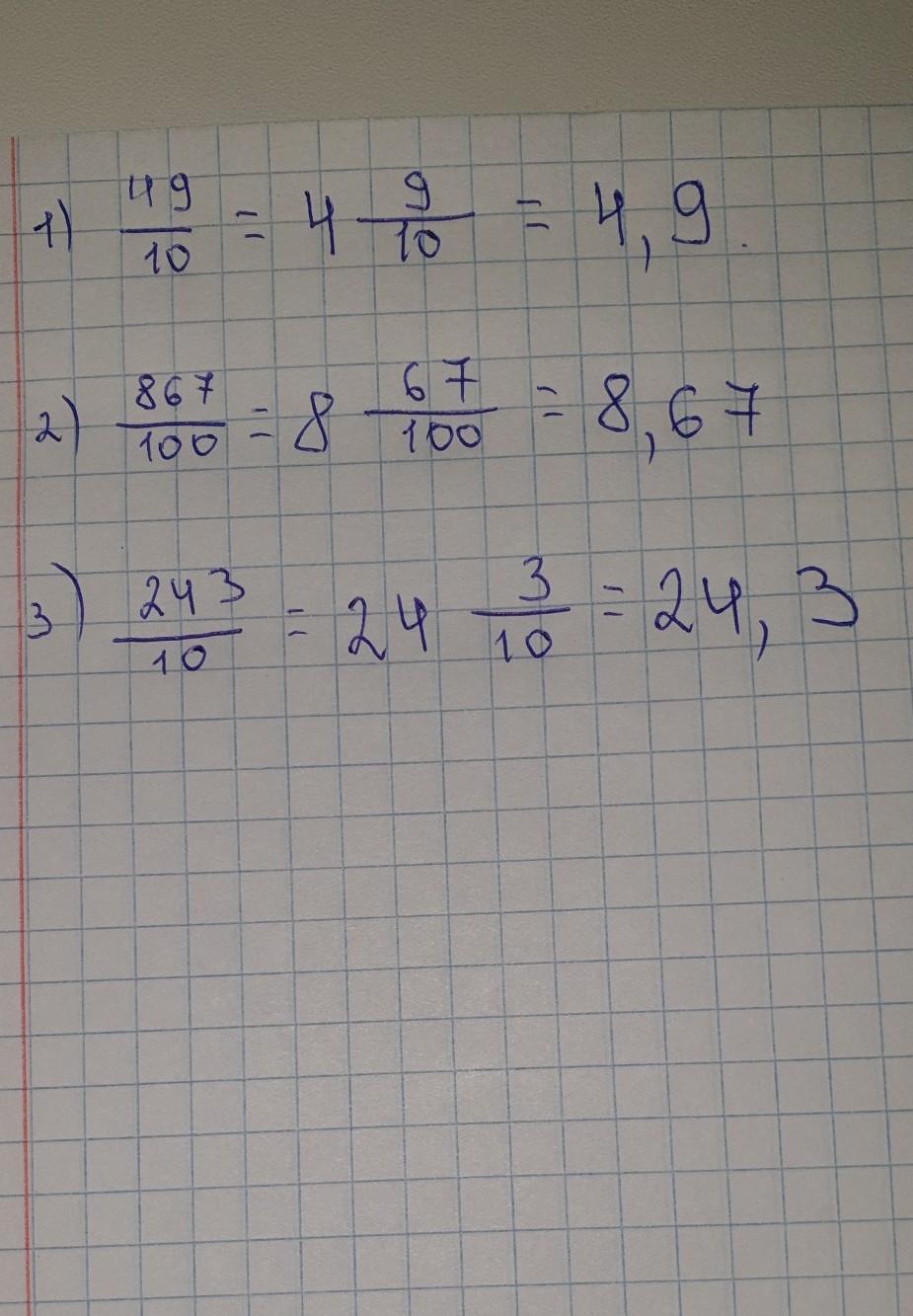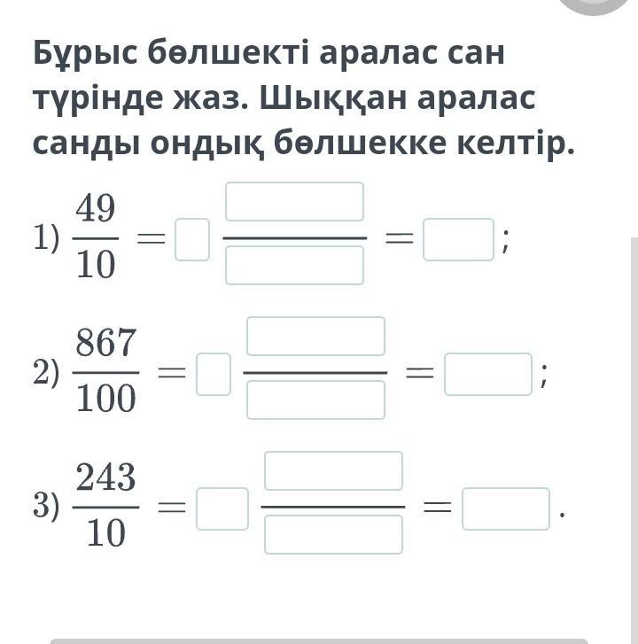 Бұрыс бөлшекті аралас сан түрінде жаз. Шыққан аралас санды ондық бөлшекке кел т