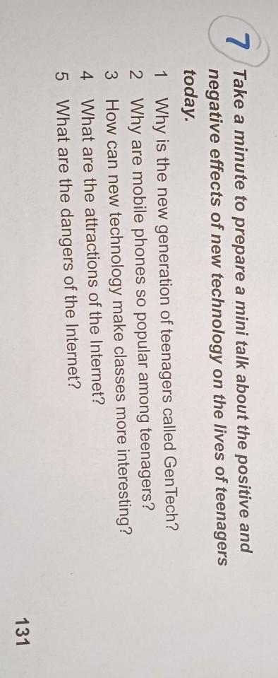 1) Почему новое поколение подростков называется поколением - тех (технологий, техники) 2)почему мобильники так популярны у подростков? 3) Как новые технологии помогут сделать уроки более интересными? 4) В чем притягательная сила интернета (популярность). 5) Какие опасности таятся в интернете?