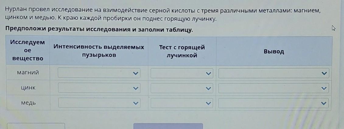 Нурлан провел исследование на взимодействие серной кислоты с тремя различными металлами: магнием,
