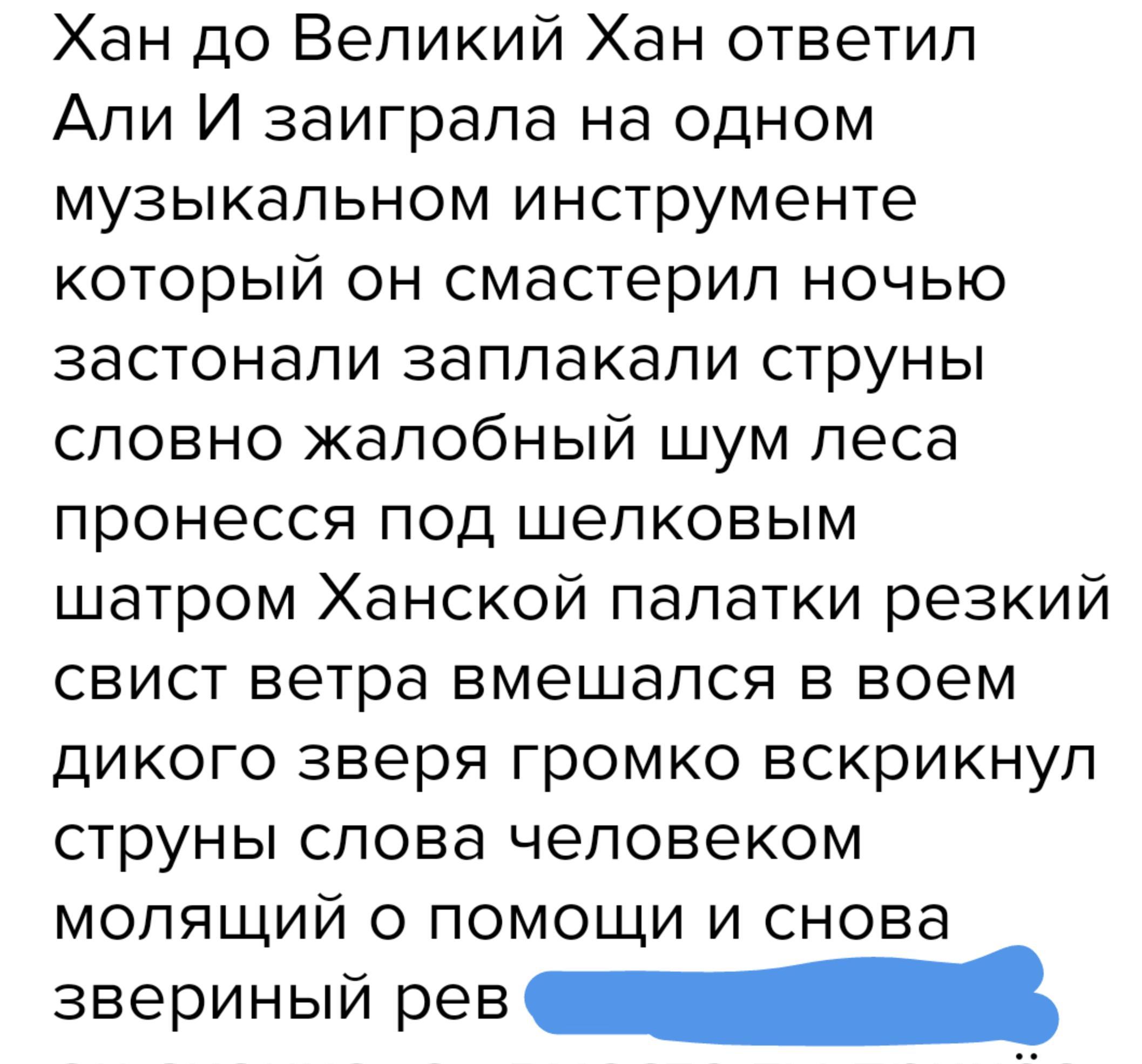 Теперь идемте к хану сказал старый пастух окружённый испуганными слугами вошел он в палатку Hannа ты принес мне весь о хусейне грозно спросил Хан до Великий Хан ответил Али И заиграла на одном музыкальном инструменте который он смастерил ночью застонали заплакали струны словно жалобный шум леса пронесся под шелковым шатром Ханской палатки резкий свист ветра вмешался в воем дикого зверя громко вскрикнул струны слова человеком молящий о помощи и снова звериный рев и что случилось он скончался вместо ты принёс мне весть о гибели хусаина но ты знаешь что я обещал весь книгу несчастье залить горло горячим свинцом Хан спокойно отвечал старый пастух я ничего не рассказал тебе я не произнес ни одного слова если ты гневаешься то Накажи этот инструмент который я за месте рил И назвал домброй Ханова ярости и горе приказал плеснуть горячим свинцом на домру и свинец лыжи круглое отверстие под струнами как старые Оли своей на охотничью и мастерством спас жизнь дядя десятку женских слуг А у жителей степи появился С тех пор новые музыкальные инструмент домбра очень полюбили его казахи и стали петь под музыку добры свои прекрасные песни