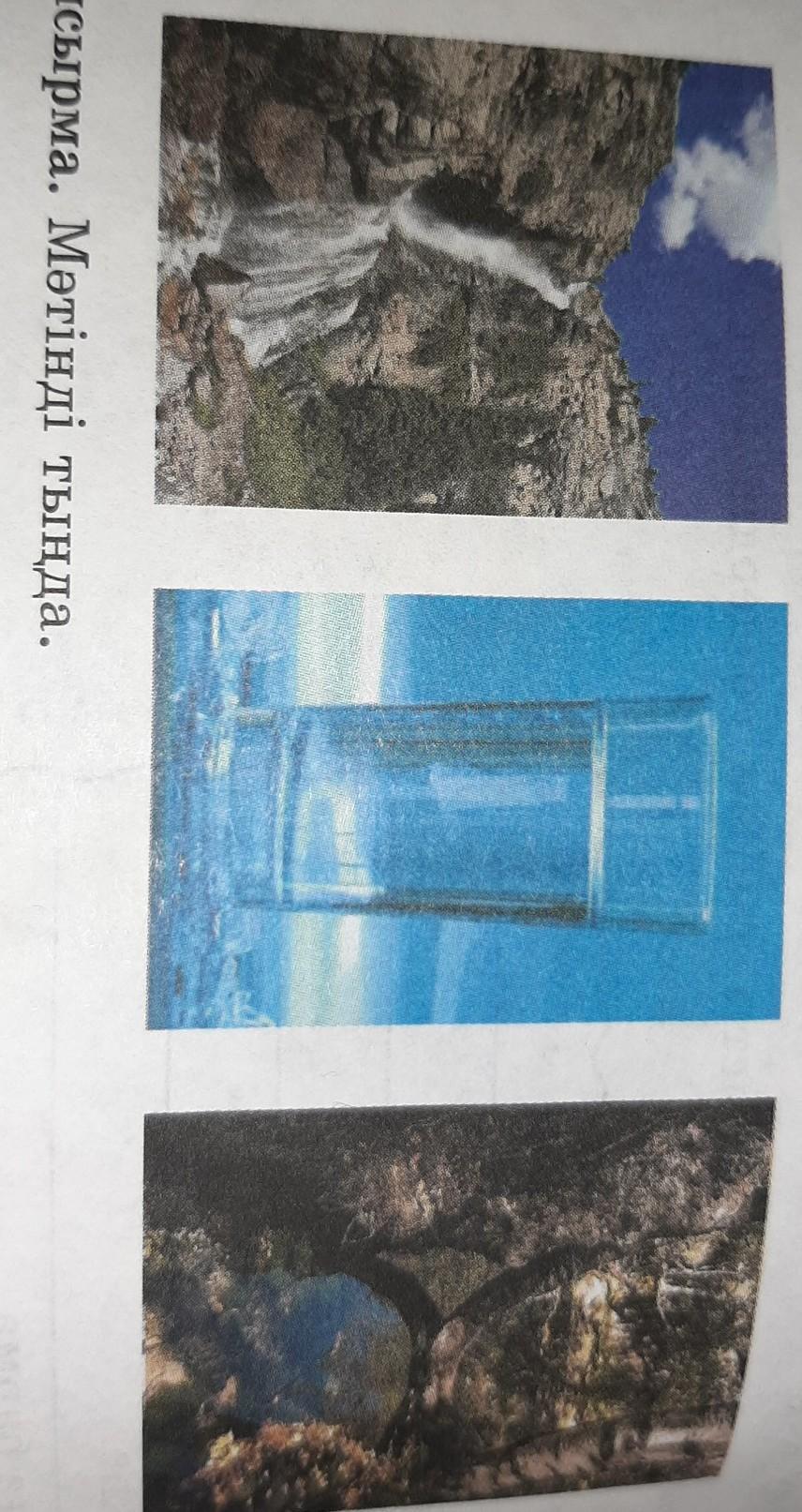Су-тіршілік көзі.Сусыз тірі ағза өмір сүре алмайды.Бірінші суретте таудан аққан бұлақ.Бұлақ көрсек көзін ашу керек.Ол бәріне керек болады.Ал екіншісуретте миниралды су.Оның адамға деген пайдасы мол.Ал үшінші ол өзен.Онымен адамдарбау-бақшасын суарады.Және жан-жануарлар су ішіп,шөлін қандырады.Жалпы су ол біз үшін,өзгелер үшінде өте пайдалы.