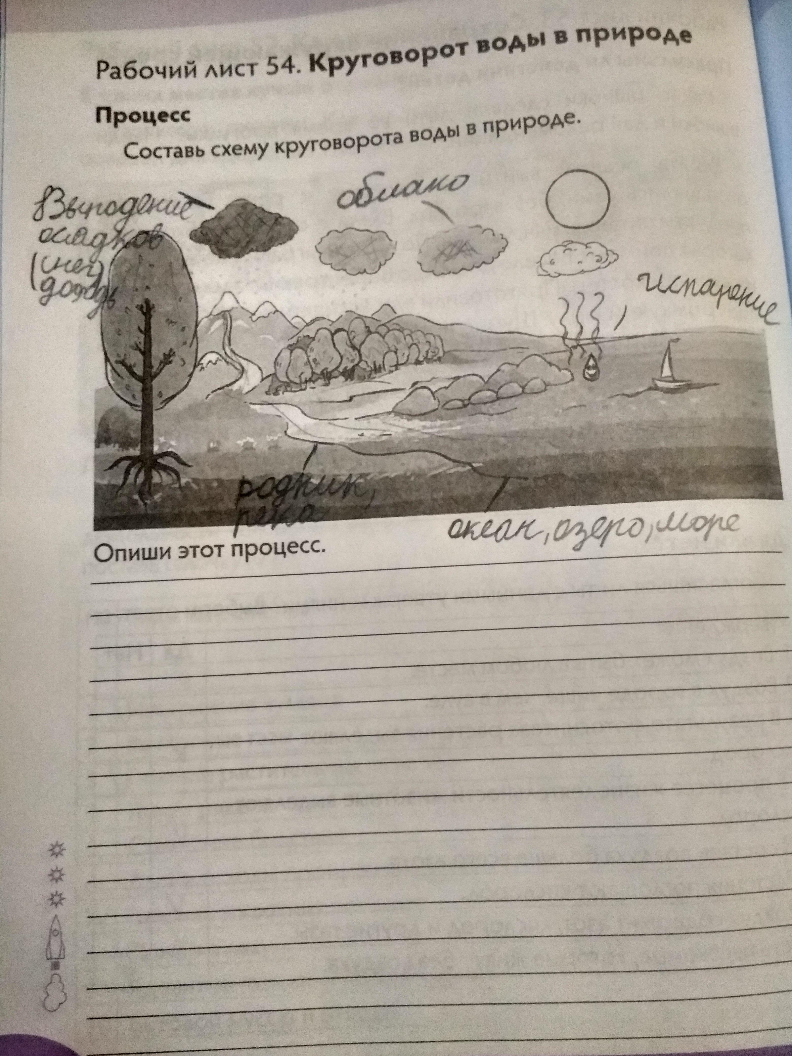 Круговорот воды происходит под влиянием солнечной радиации и сил тяжести. Солнце нагревает воду в океанах и морях, и она испаряется, преобразуясь в водяной пар. Параллельный процесс происходит и на суше: вода испаряется с нагретой Солнцем поверхности Земли или испаряется растениями в результате транспирации.