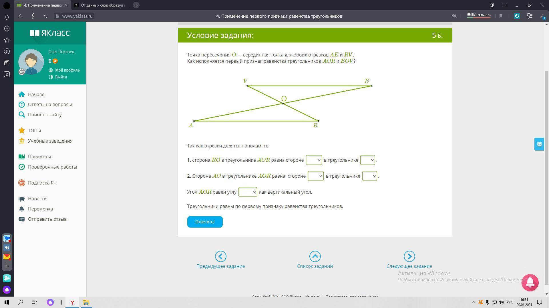 2.равна стороне EO в треугольнике EOV