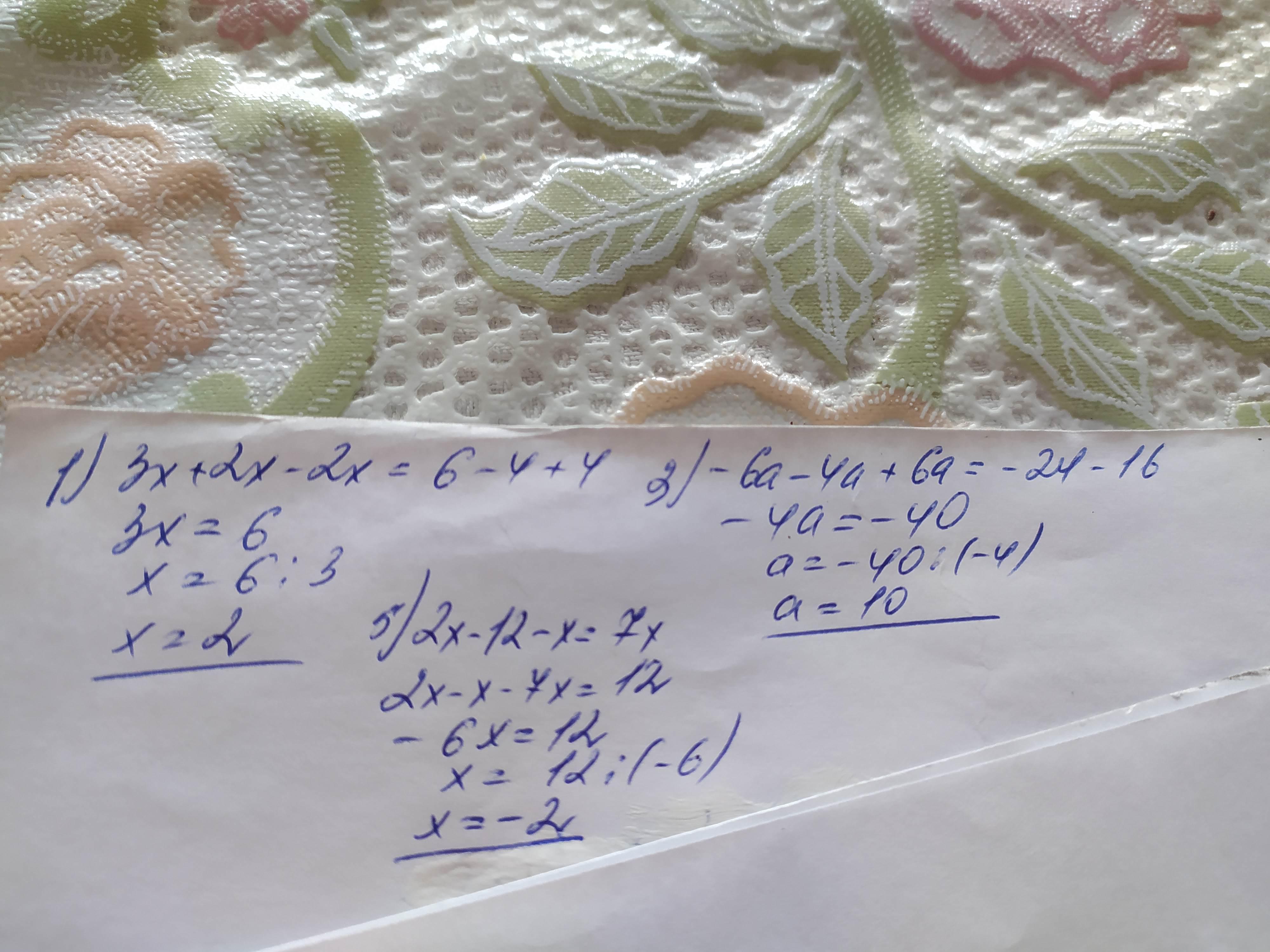 1) 3х - 4 + 2x = 6 + 2х - 4;