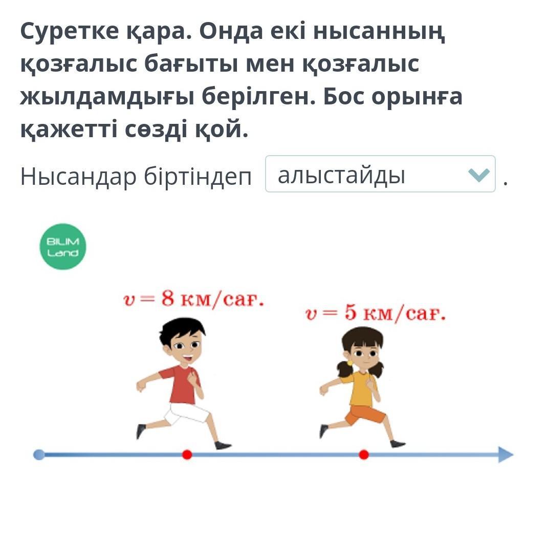 Суретке қара. Онда екі нысанның қозғалыс бағыты мен қозғалыс жылдамдығы берілген. Бос орынға қажетті сөзді қой.