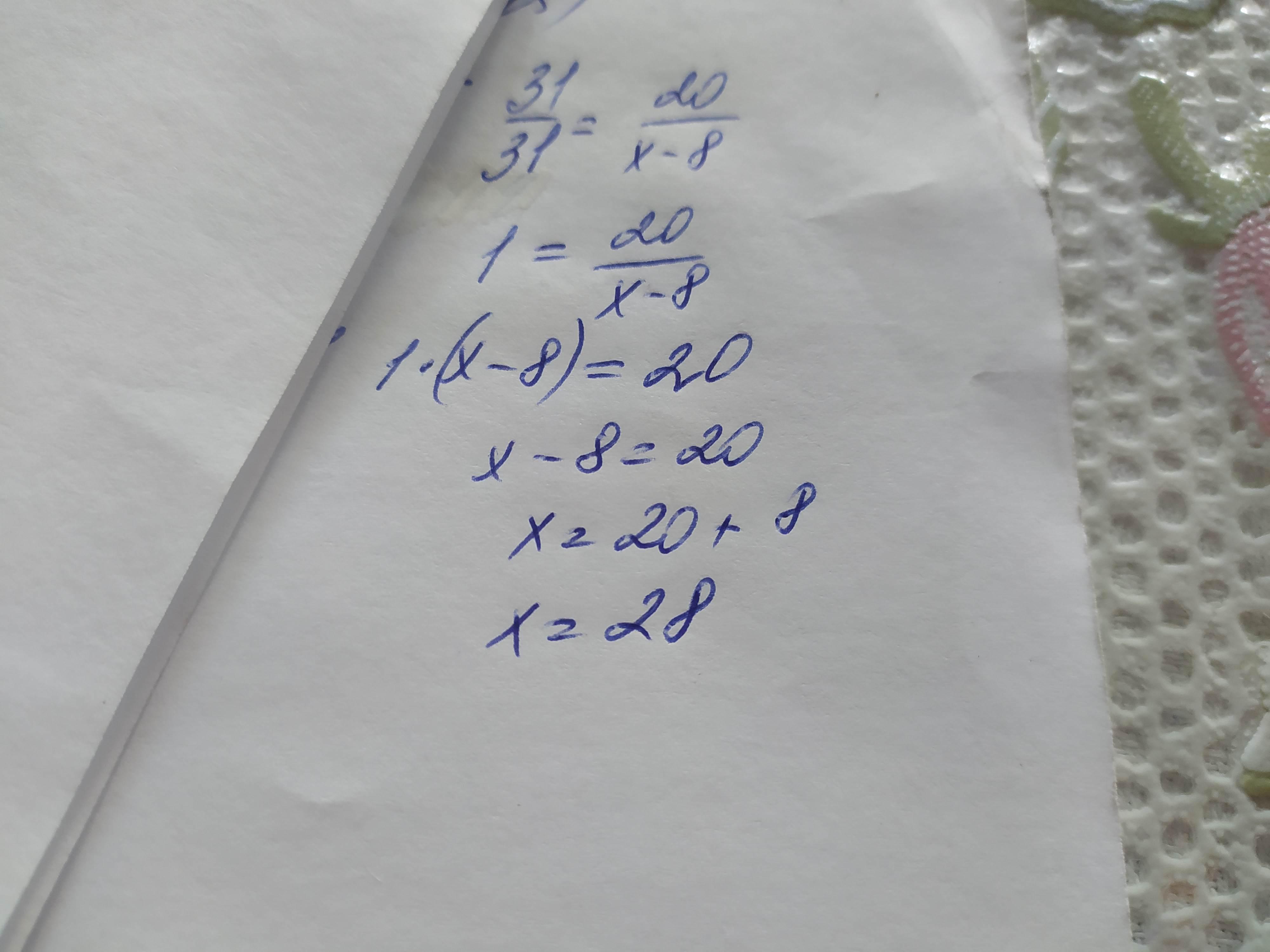 31/31=20/x-8