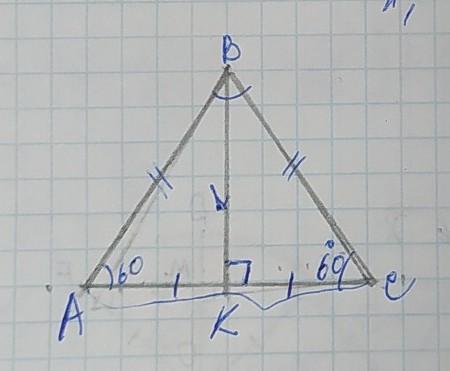 Обозначим вершины треугольника АВС, с медианой ВК. В равностороннем треугольнике все стороны и все углы равны, каждый угол составляет 60°, а медиана является ещё биссектрисой и высотой, поэтому она делит ∆АВС на 2 равных прямоугольных треугольника АВК и СВК, в которых АК, СК и ВК – катеты, а АВ и ВС – гипотенузы. Найдём сторону ВС, используя синус угла. Синус угла – это отношение противолежащего от угла катета к гипотенузе: