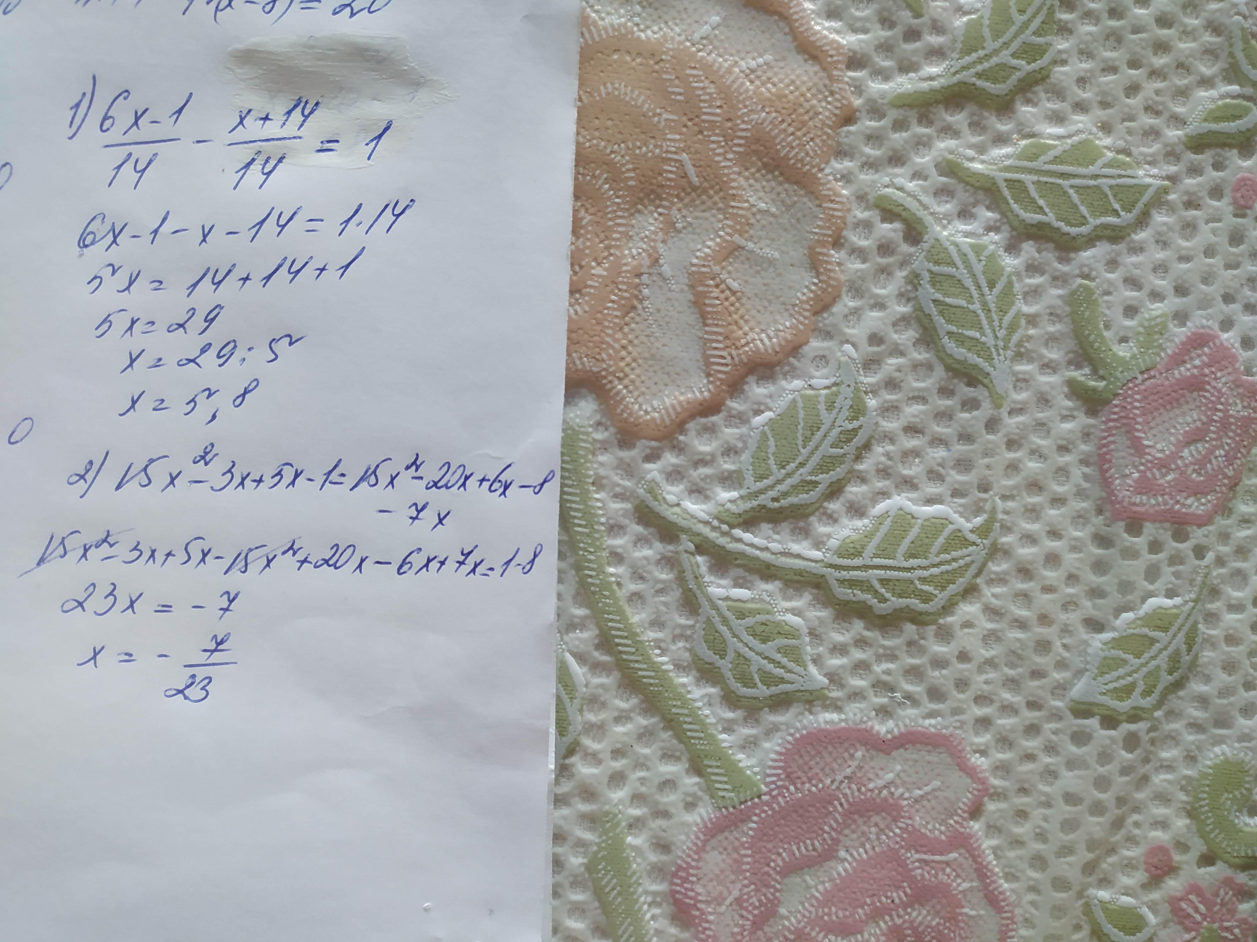 1) 6x-1_14 - x+14_14 = 1; (нижние подчёркивания это дроби)
