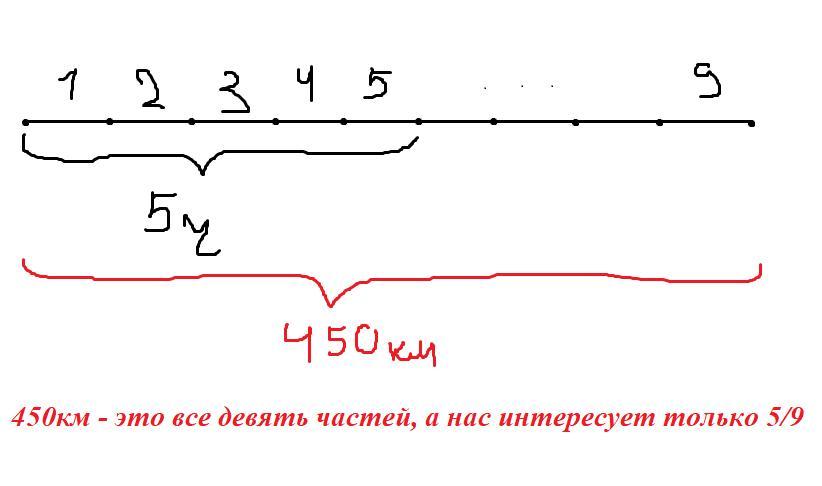 50км*5=250км (приходится на пять частей, которые мы проехали)