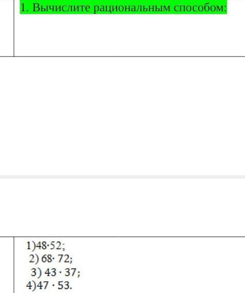 Вычислить рациональным способом 48*52 , 68*72 , 43*37, 47*53 .