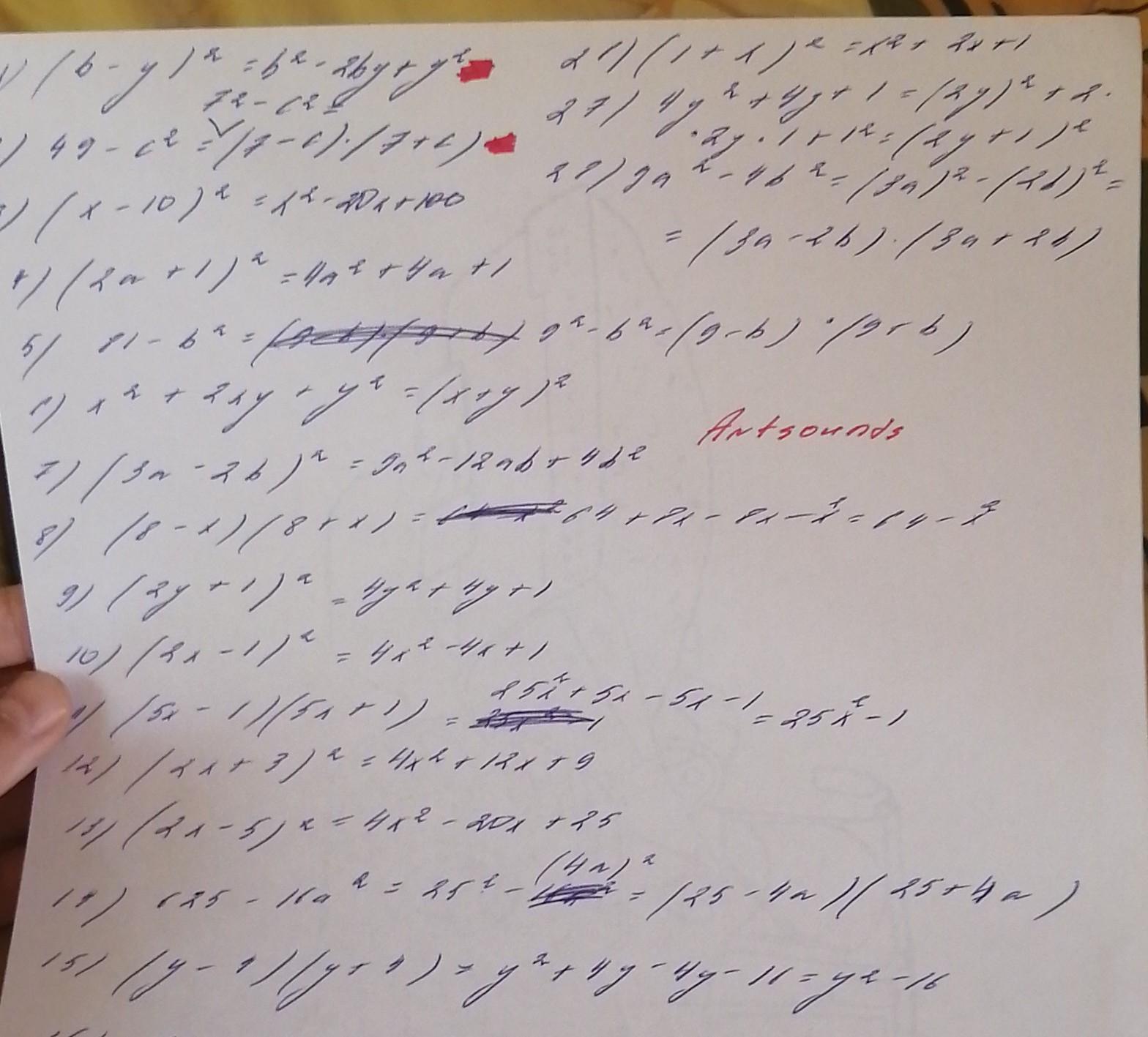 1)(b-y)²=b²-2by+y².