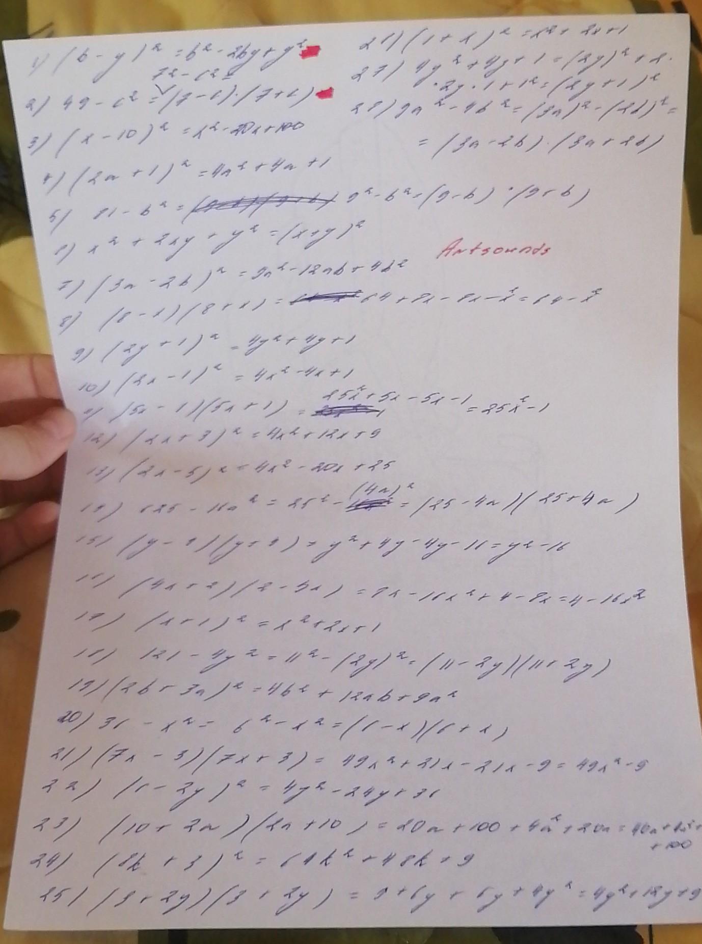 19) (2b + 3а)2 = 2b2 + 6аb + 9а2