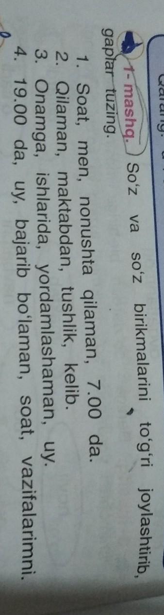 4. Soat 19:00da uy vazifalarimni bajarib bo'laman.