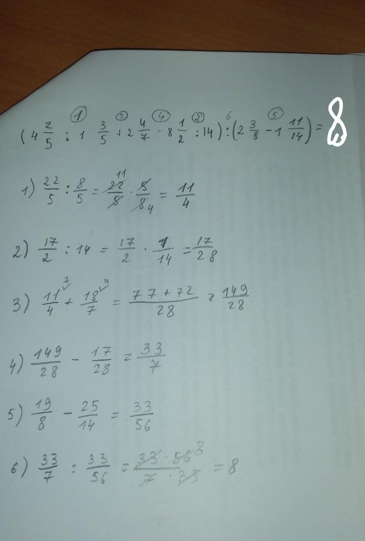 5 6/7-17/28=168/196-119/196=49/196=1/4