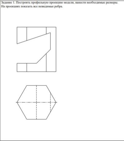 60 баллов. Построить профильную проекцию модели, нанести необходые размеры. На проекциях показать все невидимые ребра