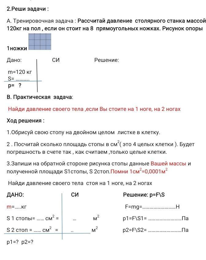 А. Тренировочная задача : Рассчитай давление столярного станка массой