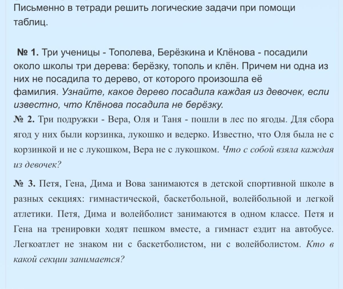 1) Кленова посадила не березку, значит исходя из условия она посадила тополь, тогда Березкина посадила клен, а Тополева - березку.