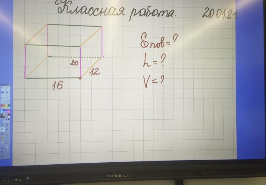 Sпов= 2(ab+bc+ac)=2(16*12+12*20+16*20)=1504
