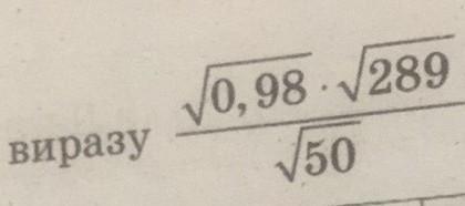 \frac{\sqrt{0,98}*\sqrt{289}}{\sqrt{50}}=\sqrt{\frac{0,49*2*289}{25*2}}=\sqrt{\frac{0,7^{2}*17^{2}}{5^{2}}}=\frac{0,7*17}{5}=\frac{11,9}{5}=\boxed{2,38}