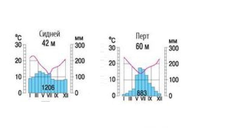 2 Самая низкая температура в г. Сидней в июле +12°, в г.Перт в июне +14°.