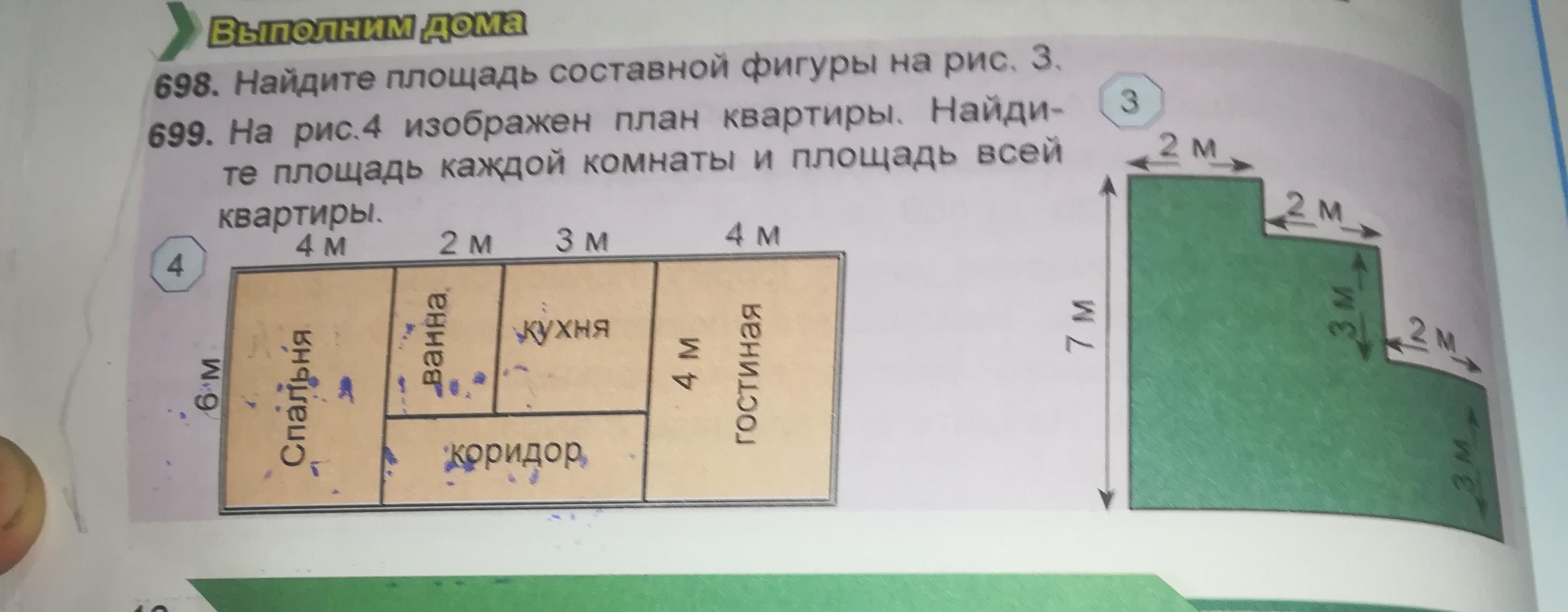 6 * 3= 18 м2 площадь большого прямоугольника